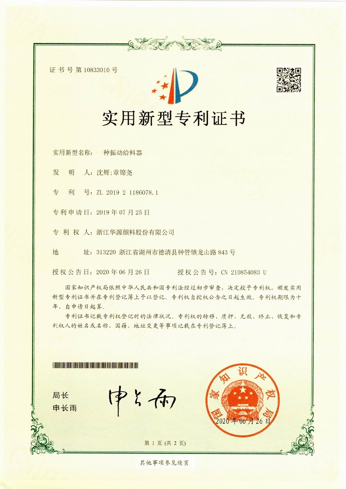 華源顏料六項專利喜獲授權
